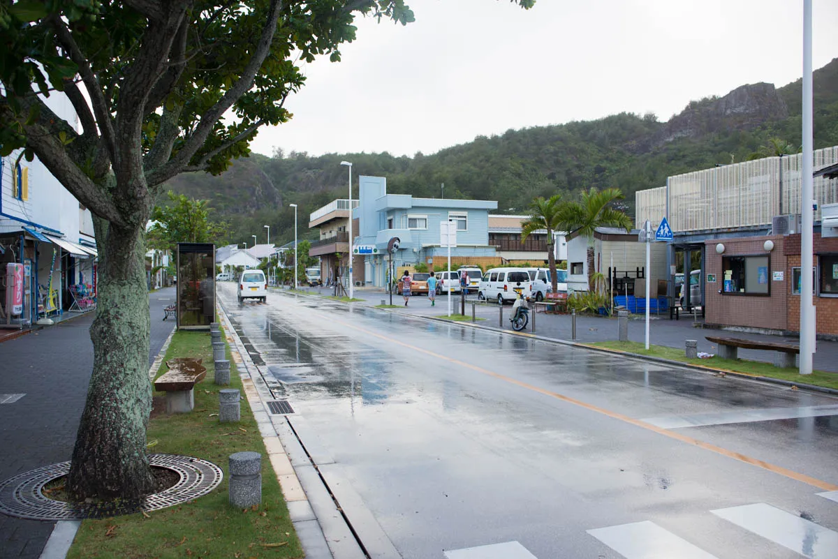 父島の中心街、大村地区には官公庁からスーパーまで全てがあります。通称、父島銀座。おがさわら丸の出た雨の日、町は閑散としていました。船が到着すると賑やかさを取り戻します。おみやげから日用品の購入、外食までここで楽しみましょう。