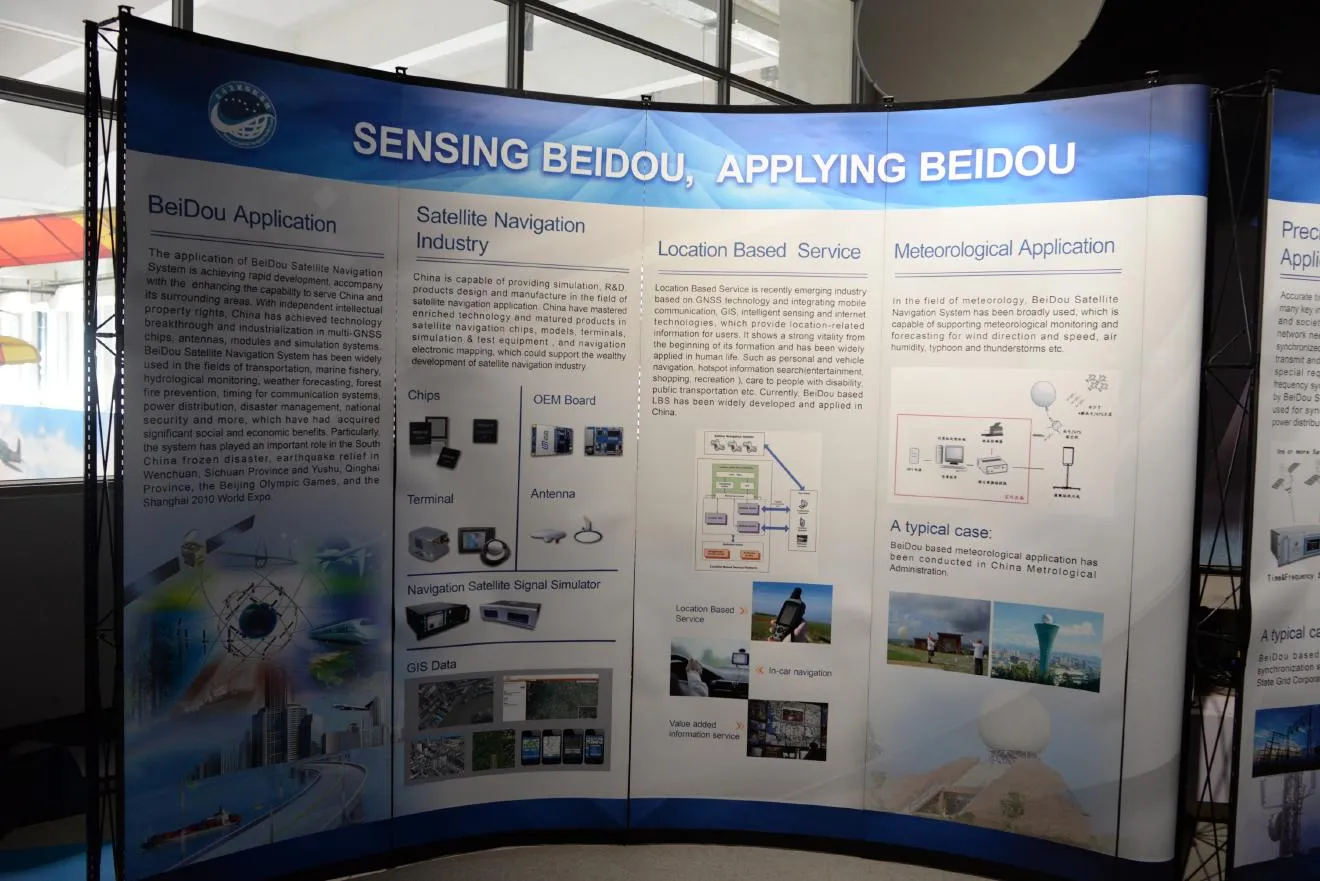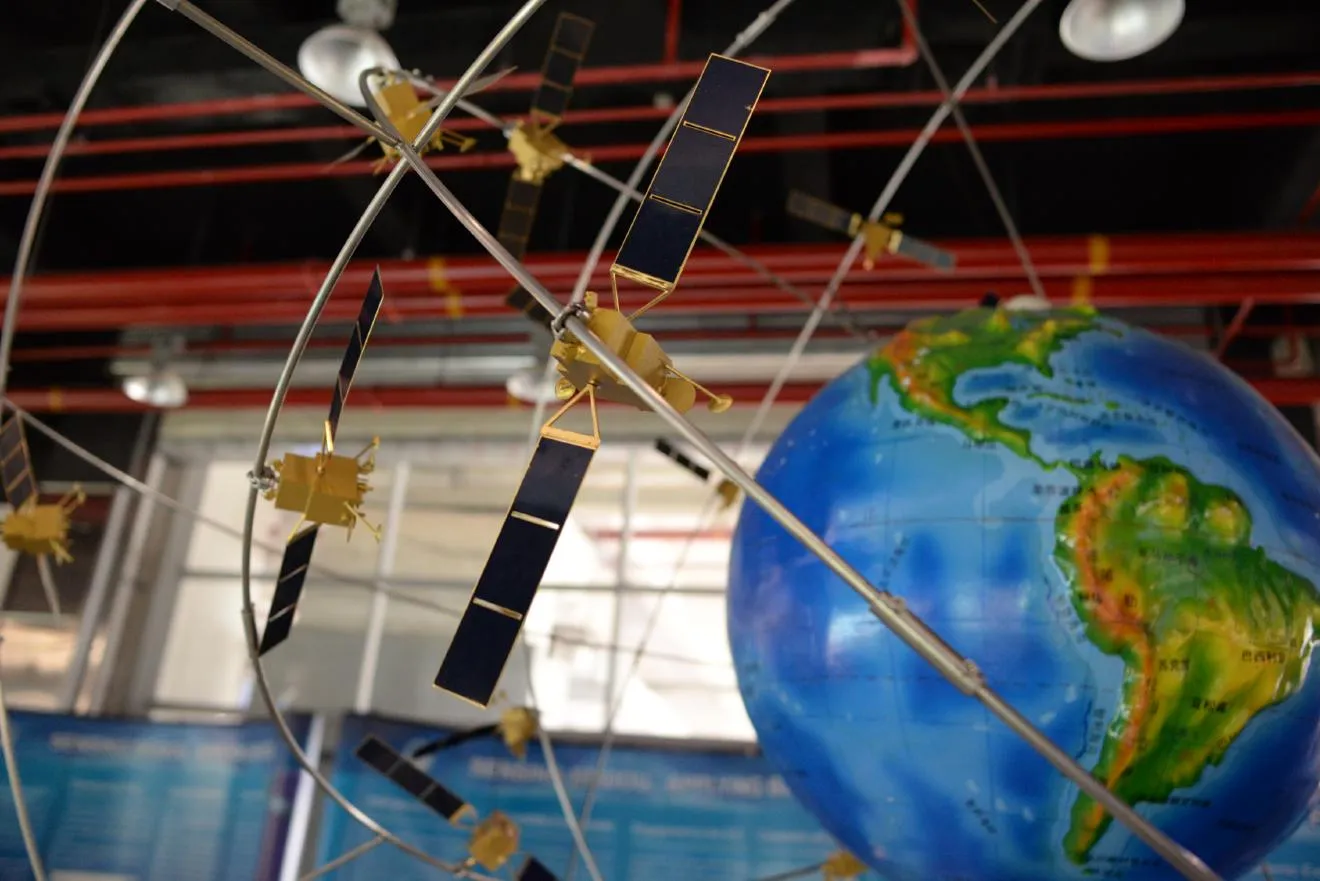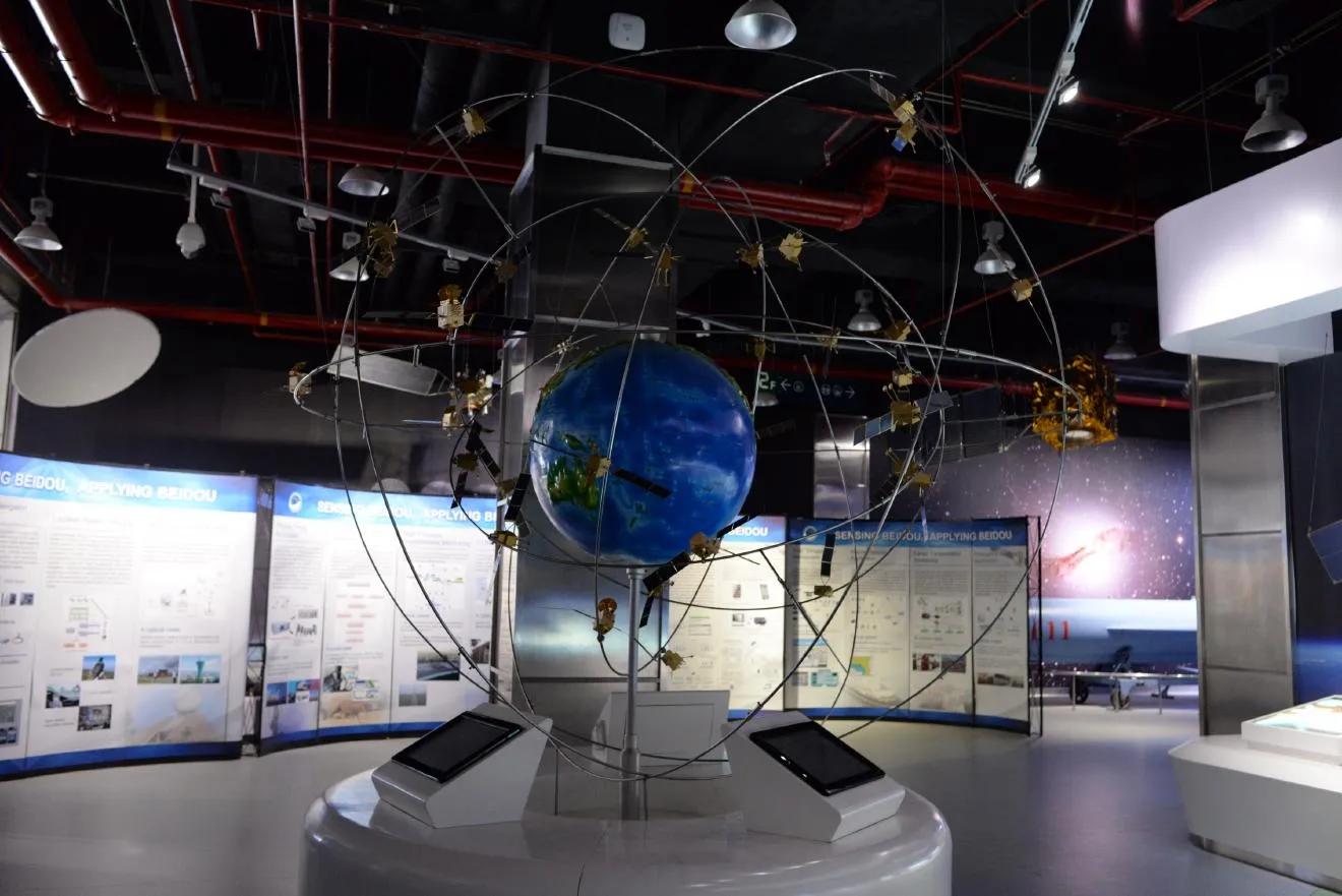 こちらの人工衛星だらけの模型は中国のGPS、北斗の説明模型です。公開部分と非公開部分があると言われています。