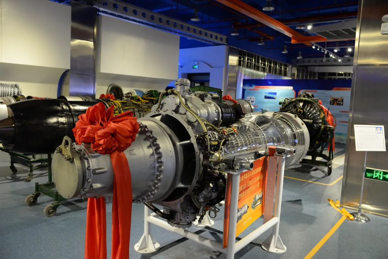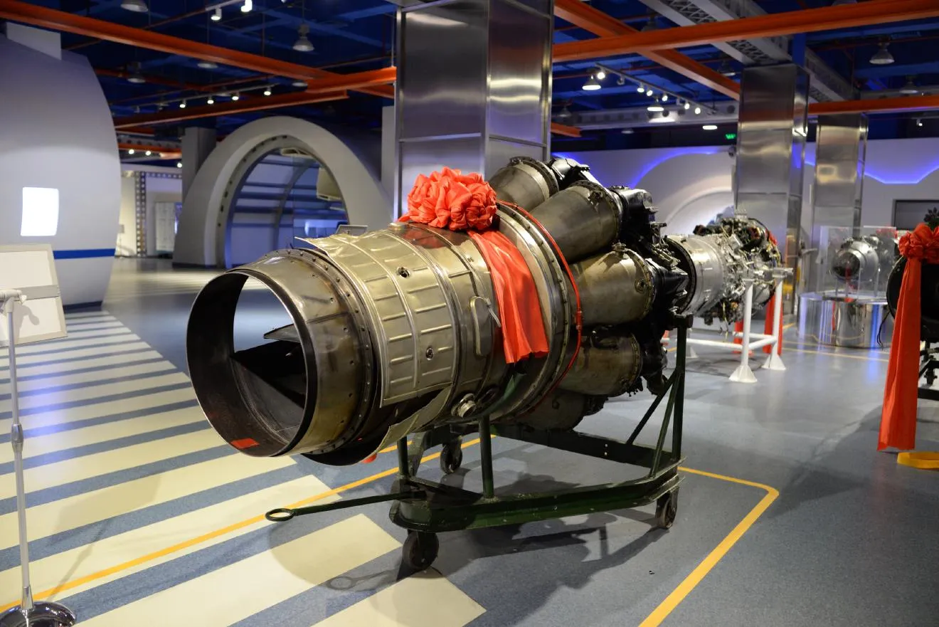 航空機やロケットのエンジンの展示もありました。赤いリボンは寄贈の印。こんなもの、寄贈されても困るなあ、と思ってしまいました。