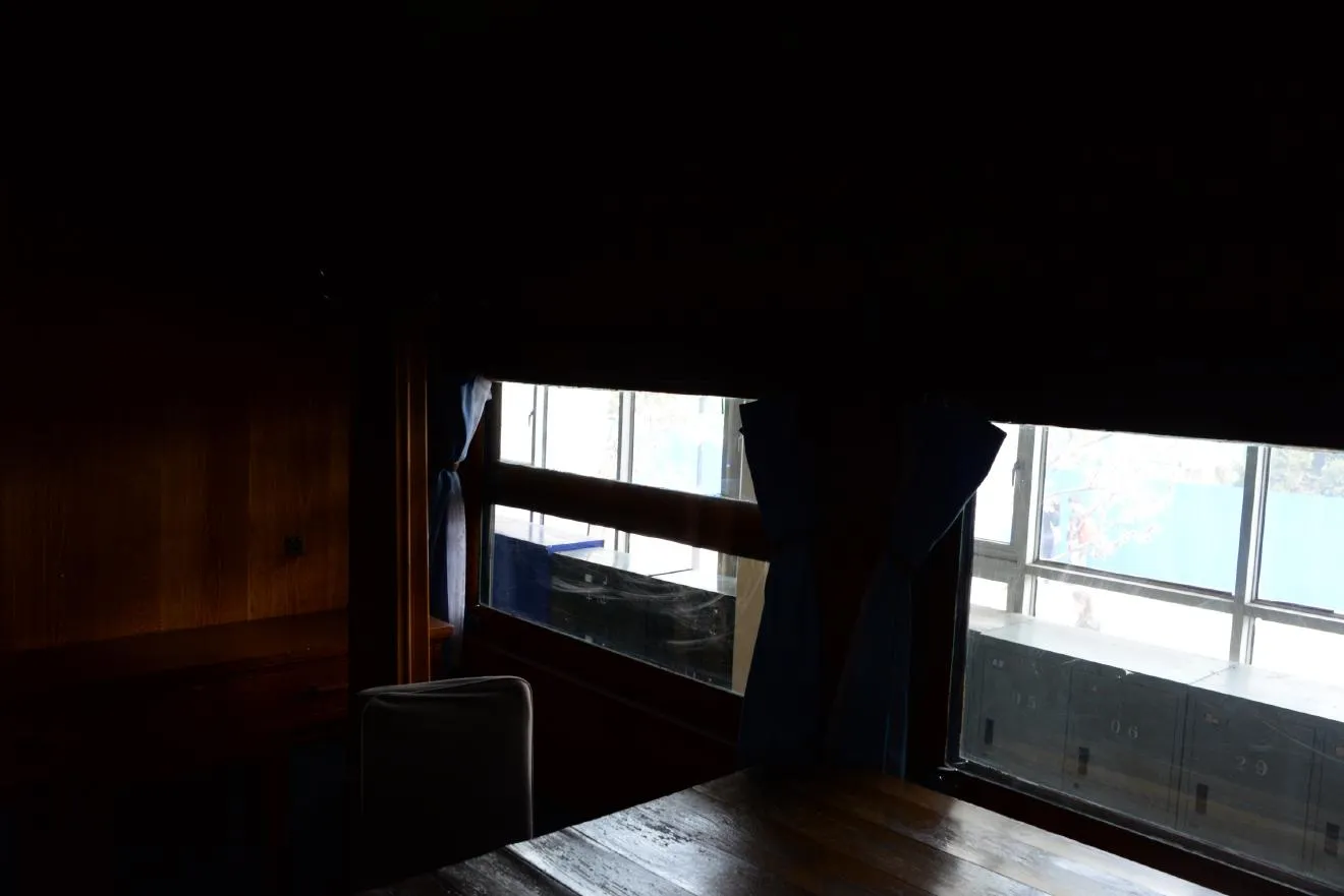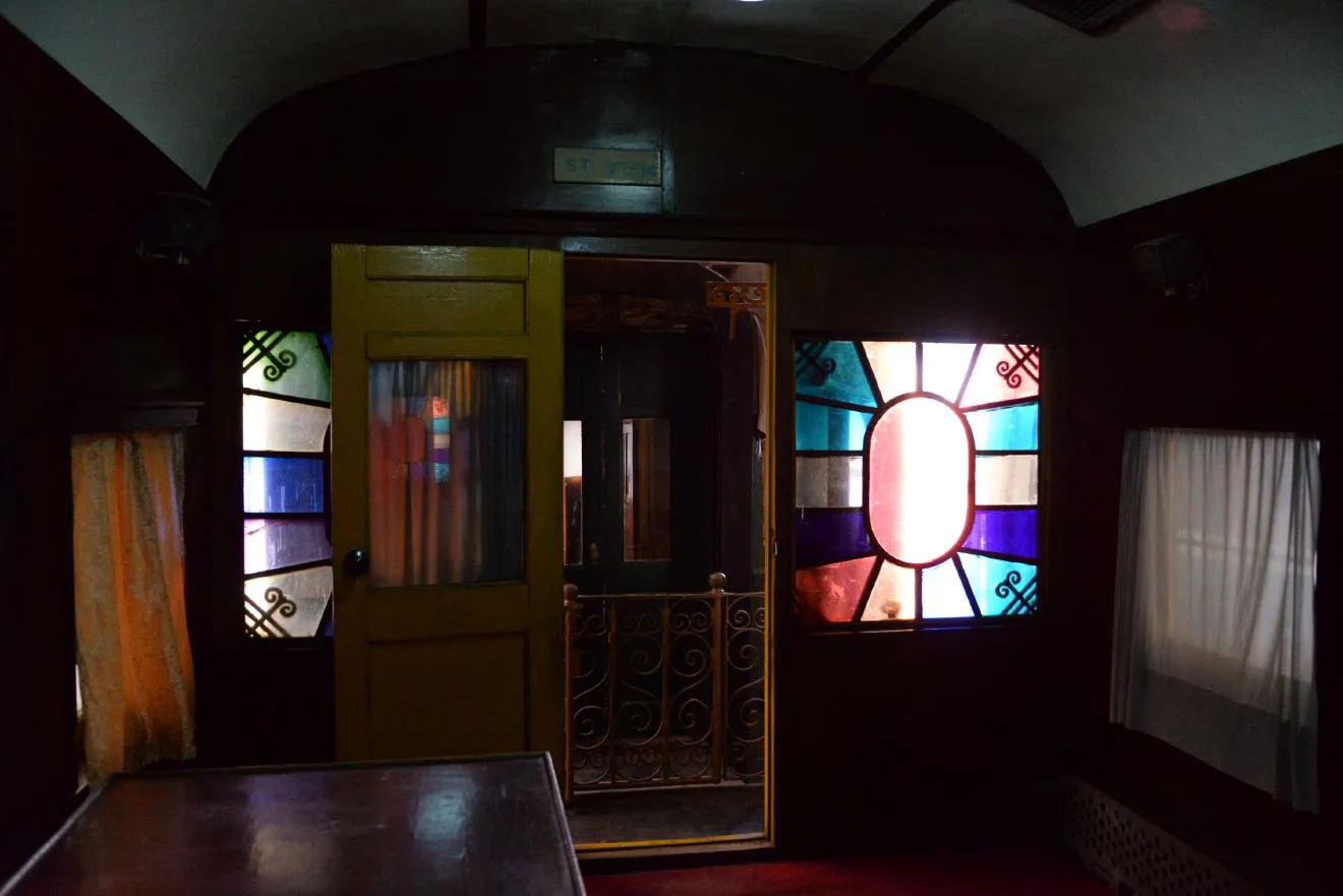 試作車の内部です。ステンドグラスが素朴です。