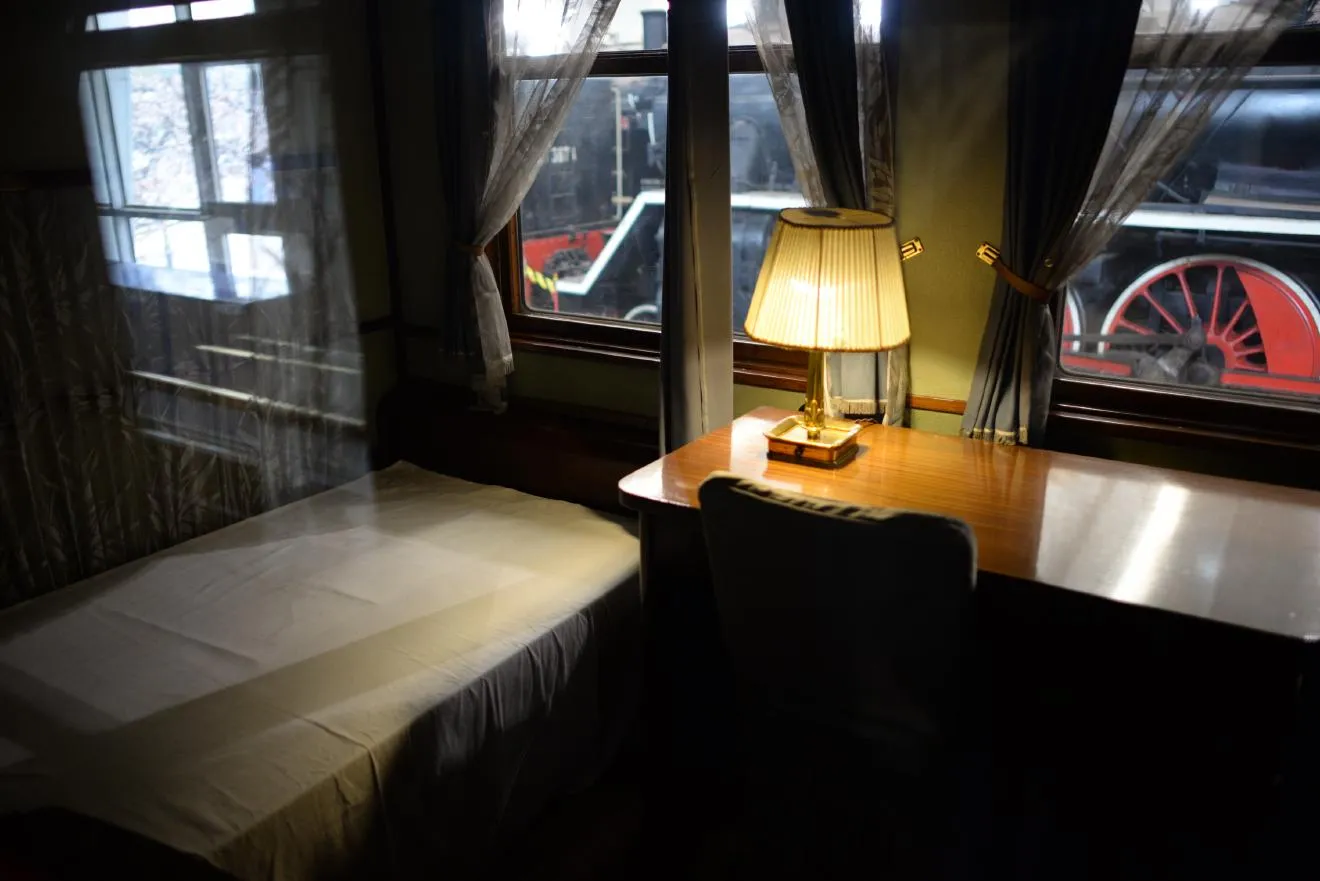 1936年製、元「テンイネ2型」。南満州鉄道時代の車両で、1938年から1944年まで運行されました。イはイロハのイ、一等車のことです。トップの写真もこの車両です。