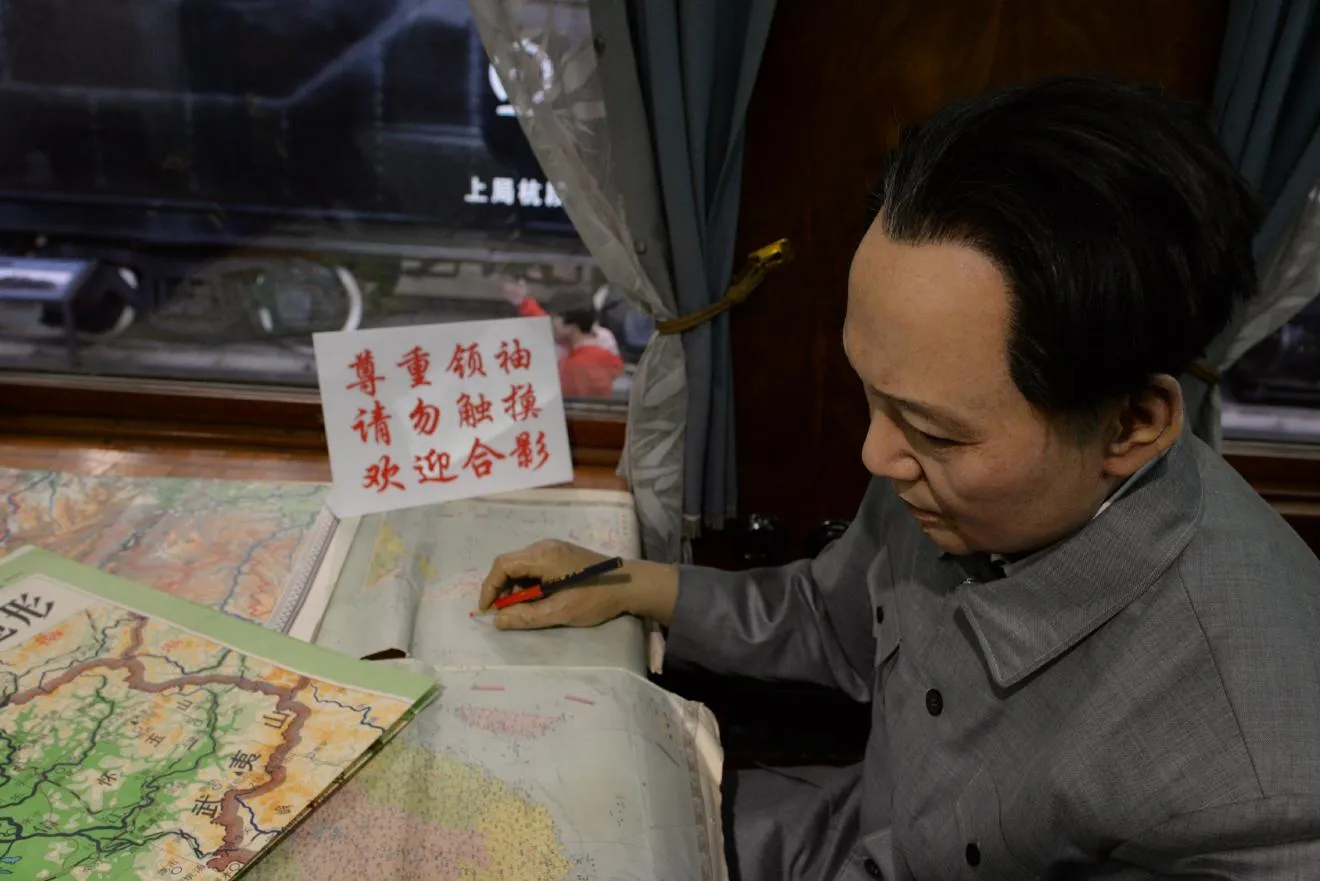 毛沢東主席が鎮座していらっしゃいます。上のYWの外観写真でも、中に毛主席がいらっしゃるのが見えます。気づきませんでした。主席なのに硬臥(B寝台)を使われているとは思いませんでした。
