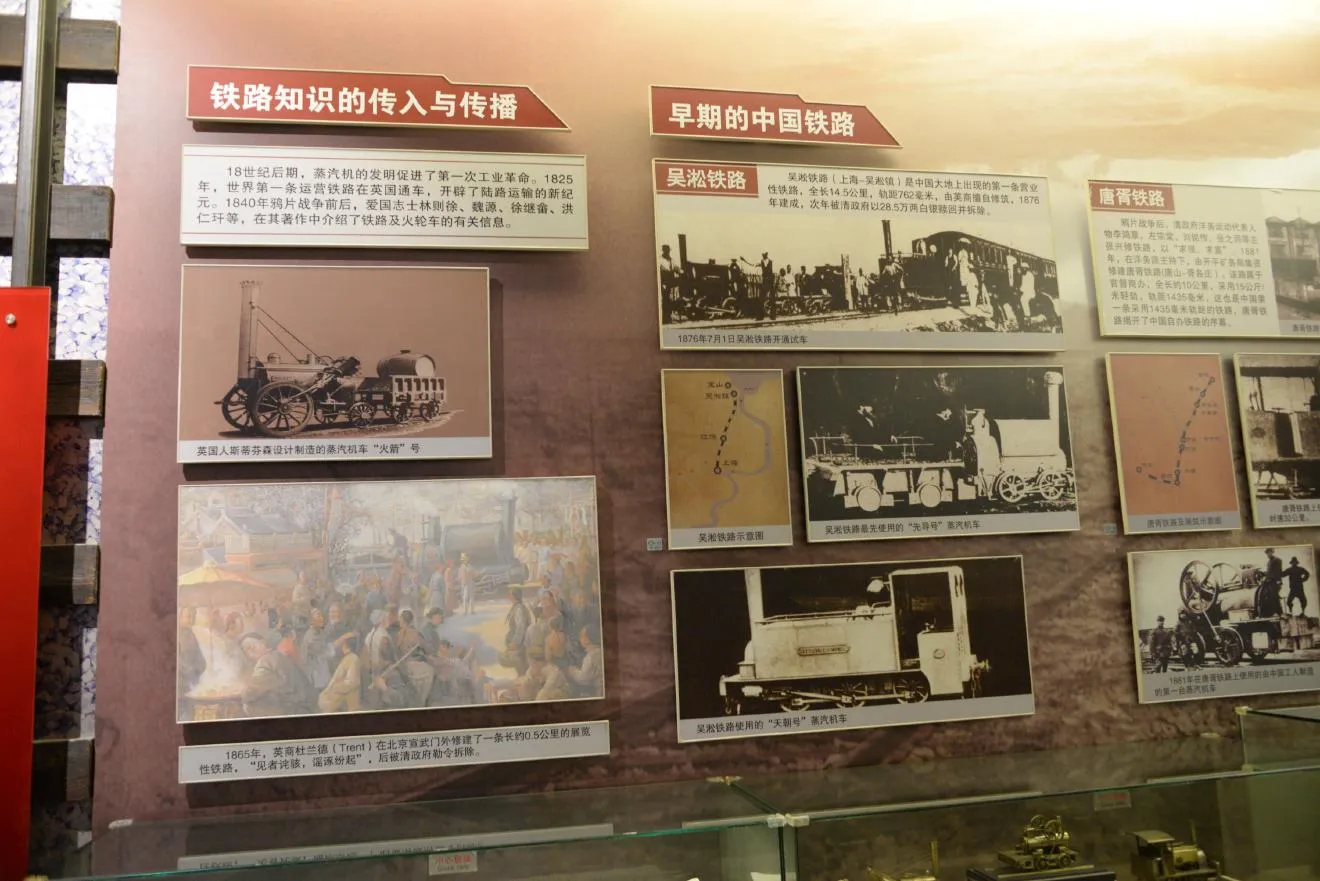 1865年、北京の宣武門に0.5kmの遊覧線が敷設されたのが、中国に鉄道がもたらされた瞬間です。その後、無許可だったため数年で撤去された呉淞鉄道が敷設されました。ちゃんと紹介されています。