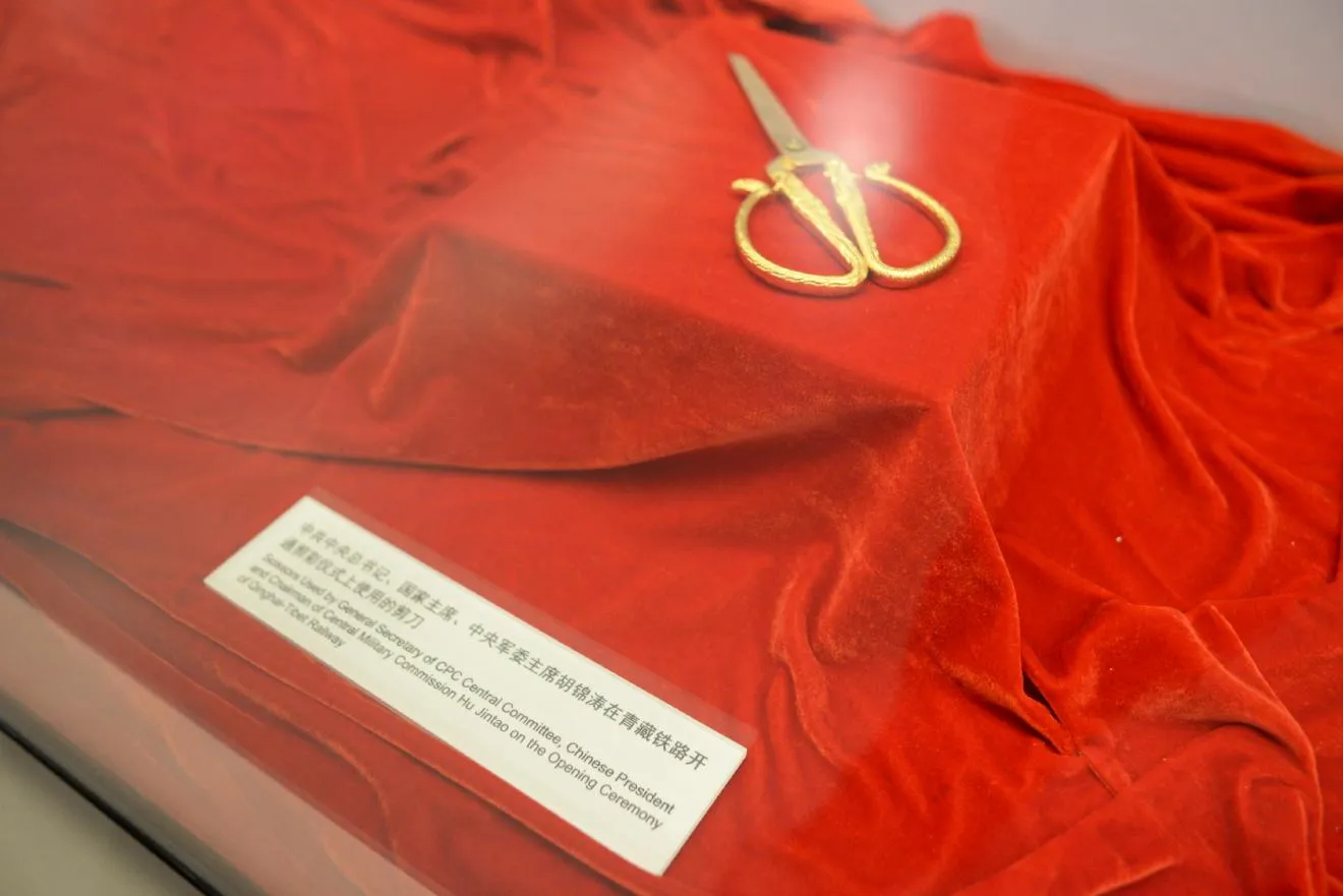 「中国共産党総書記、国家主席、中央軍事委員会主席の胡錦濤におかれては青蔵鉄道開通テープカットにて使われたはさみ」