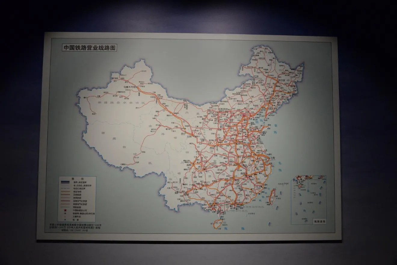 中国の鉄道網地図です。1989年に出版された地図と書かれてあるのに、チベット鉄道や台湾新幹線も書かれています。