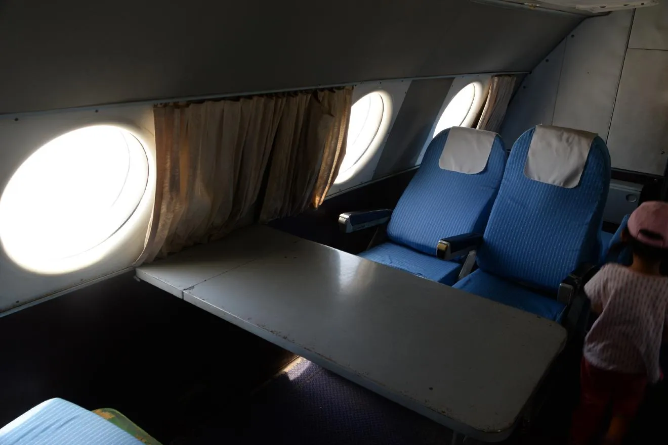 機内は古ぼけた感じがしますが、いたって普通の旅客機です。