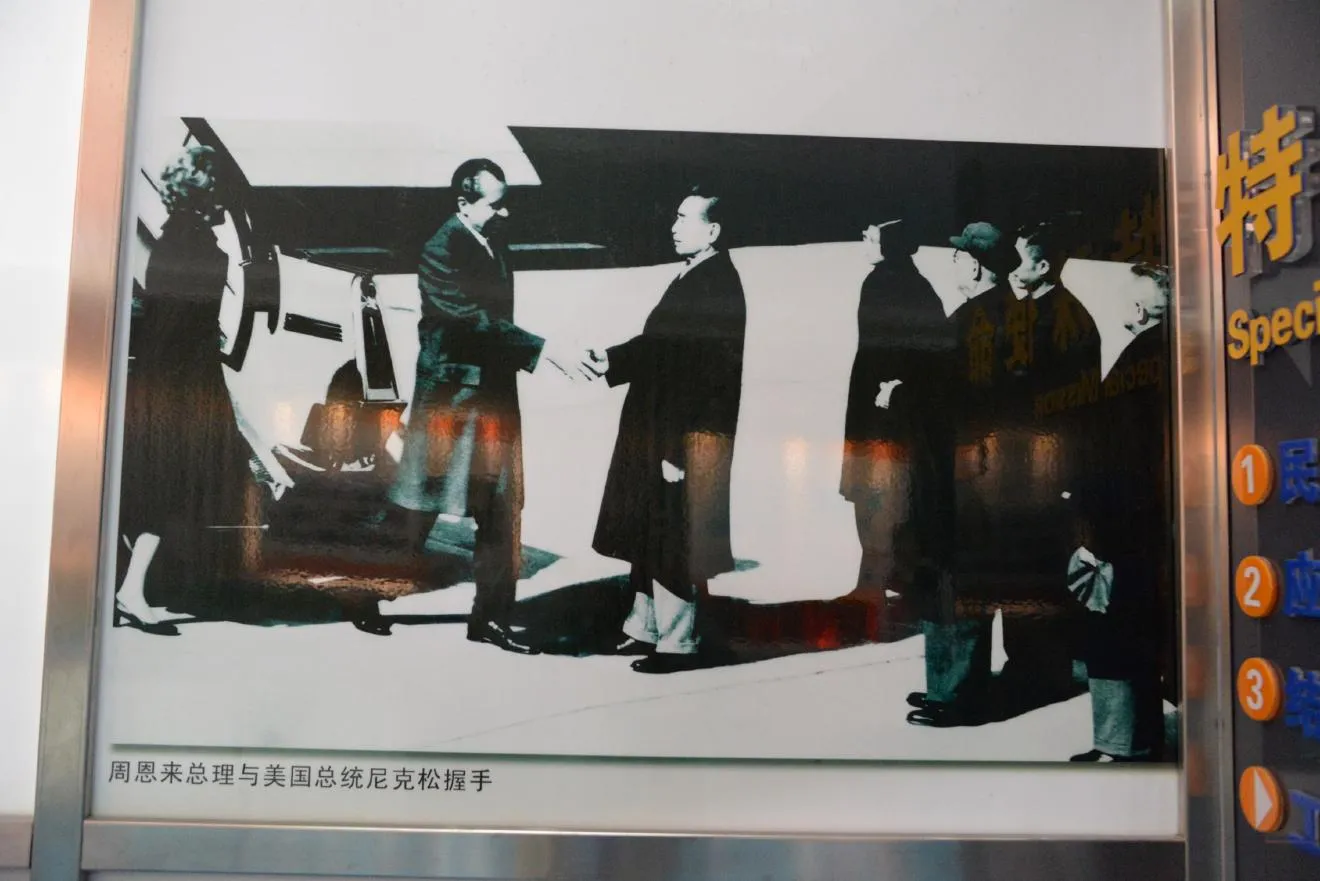 周恩来総理がニクソン大統領と握手をされているようす。