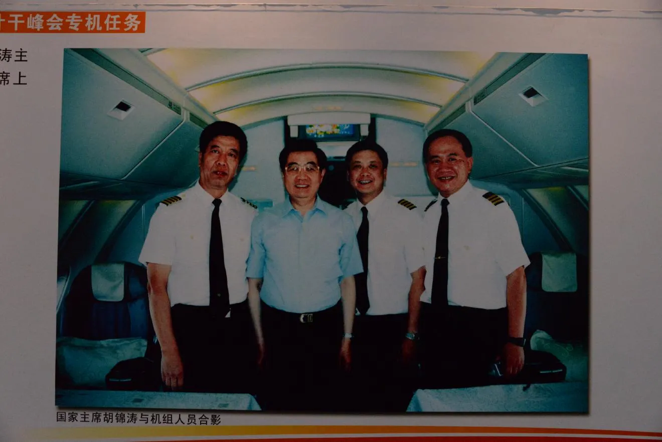 胡錦濤主席、クルーたちとともに。