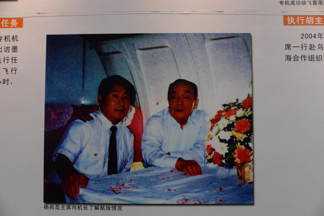 楊尚昆国家主席がフライトの状況の説明を受けているところです。