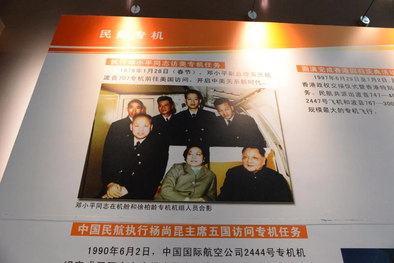 鄧小平同志と乗務員の写真。1979年1月28日(旧正月)に中国民航のB707で渡米した時の写真だそうです。