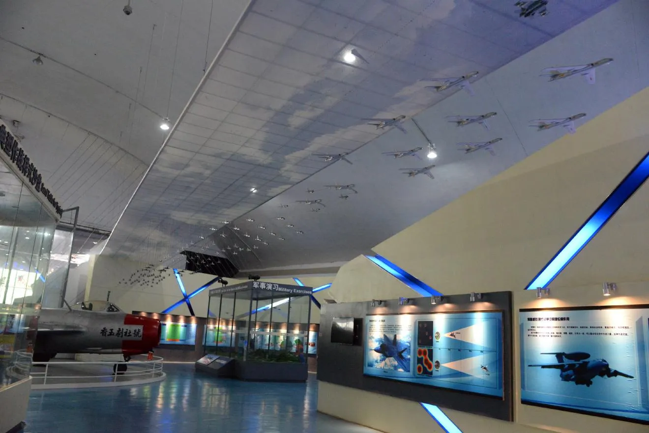 天井には模型でできた編隊がつるされています。