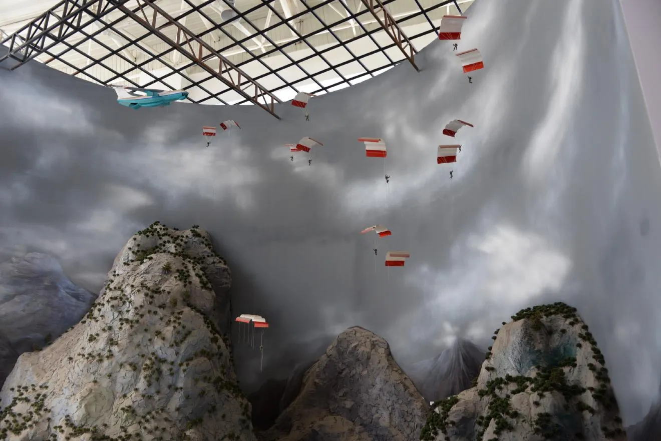 複葉機、レシプロ機、ジェット機とさまざまな世代の機体が一堂に会しています。 飛行場のモデルもあります。