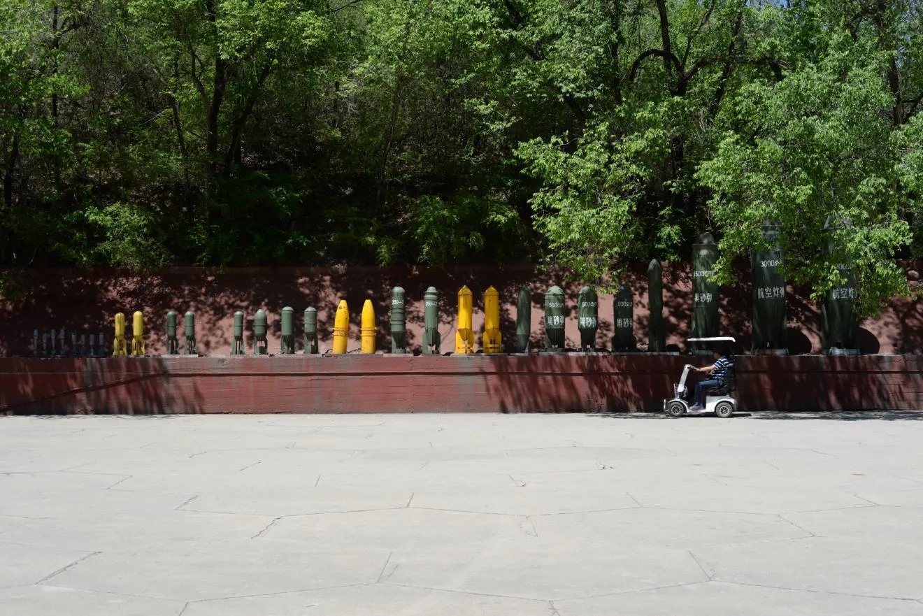 ミサイルの展示も。シニアカーに乗っているおじさんと比べると、その大きさがわかります。