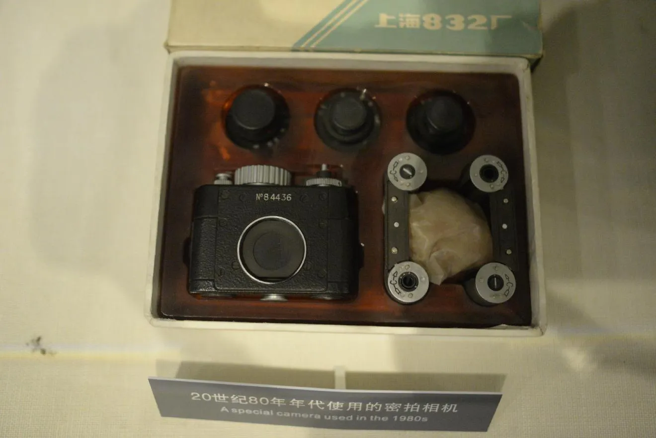 堂々と展示されていますが80年代に使われた盗撮用カメラです。箱も残っています。