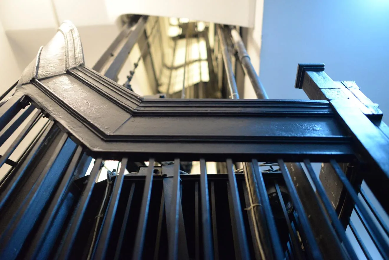 この建物はかつて銀行だったようで、当時から残っているエレベーターが貴重な遺産として展示されていました。