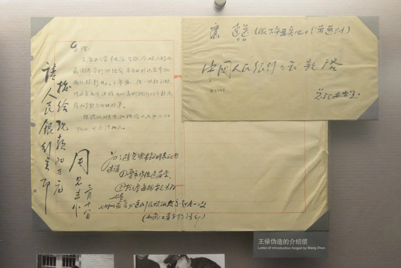 凶悪犯を検挙した資料も展示してあります。これは王[イ卓]という犯人が偽造した周恩来の親筆。