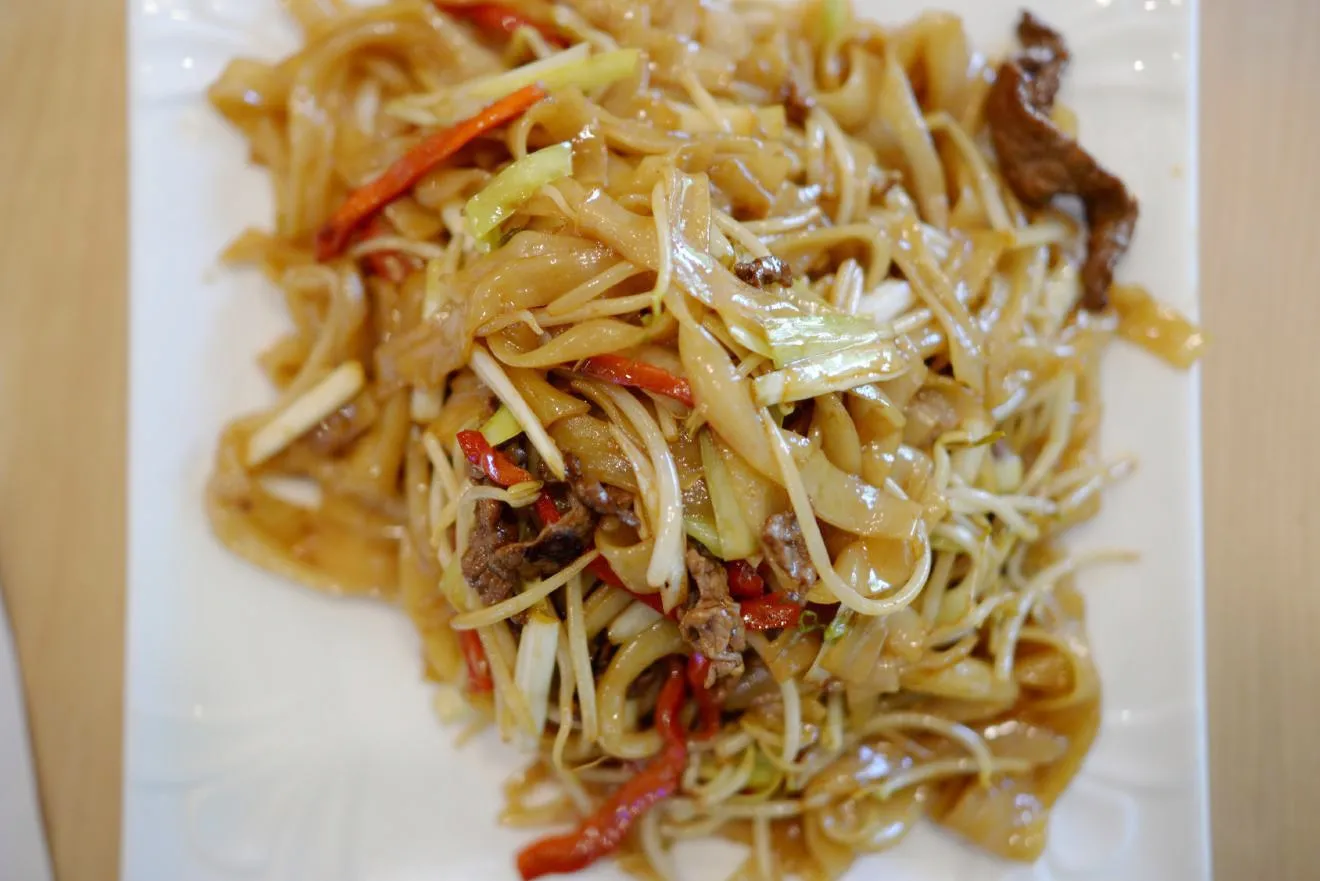 頼んで出てきたのは羊肉とネギとうどんを焼いたもの。