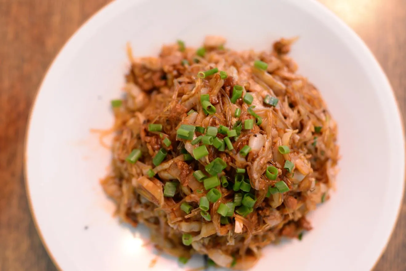 春雨と白菜、そして豚肉が一緒に炒められてある。