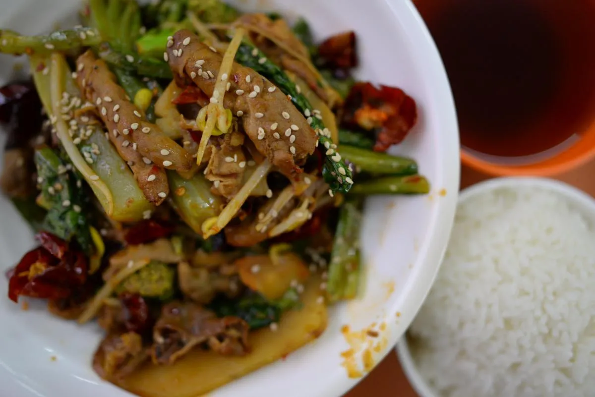 すると中華鍋の中で唐辛子と山椒の実とともに炒めらる。