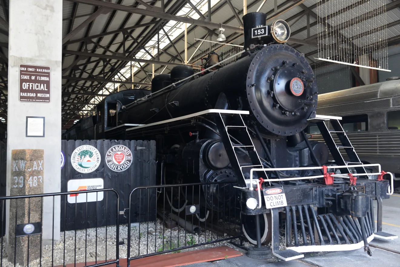 蒸気機関車もありました。Florida East Coast Railway (FEC) Steam Locomotive #153 AND #113だと思います。1922年に製造され、1938年まで走っていました。1928年には大統領の乗る列車をけん引したこともあるそうです。