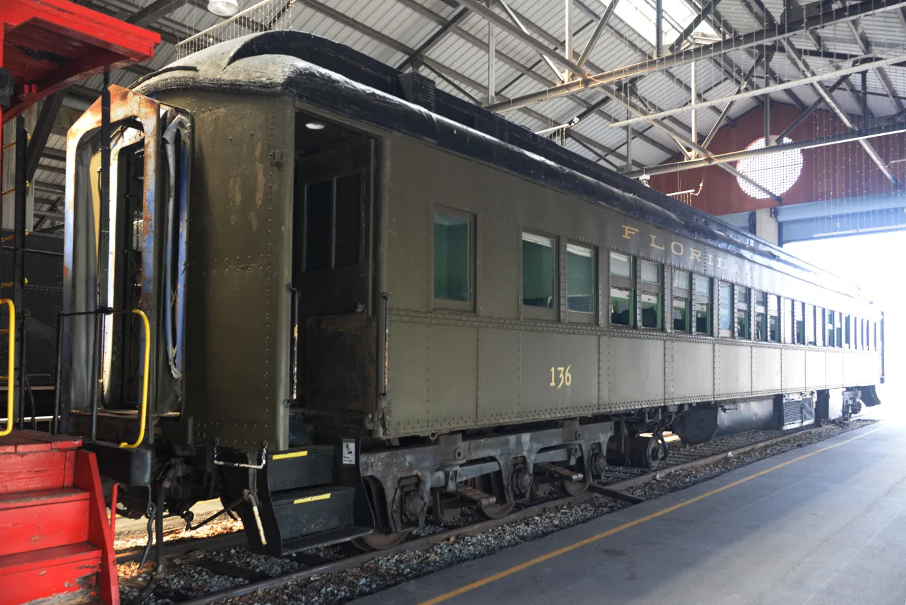 珍しい3軸ボギー車です。Florida East Coast Railway (FEC) Passenger Coach #136という名前の客車で、1925年に製造されました。